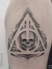 大臂骷髅几何个性点刺tattoo纹身图案