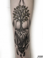 大臂点刺几何树个性纹身图案