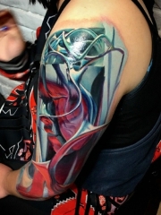 大臂鲜艳的彩绘3d机械纹身图案很威武
