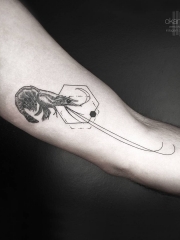 大臂几何线条猪牛纹身图案