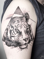 大臂老虎几何点刺个性的纹身图案