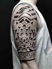 男性大臂膀上强健有力的黑色部落图腾纹身图案