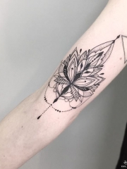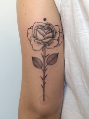 大臂小清新玫瑰点刺线条纹身tattoo图案