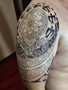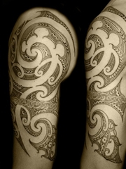 让人看到的是无限力量的男性半袖大臂部落图腾纹身图案