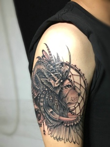 大臂一只凶猛的狮子头纹身图案