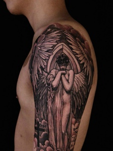 大臂个性传统天使纹身图案