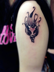 大臂简单个性的小狐狸纹身图案