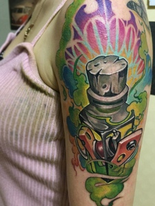五颜六色的大臂各种图案一起的纹身