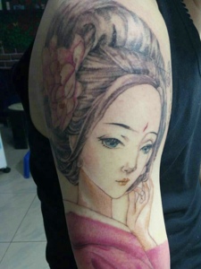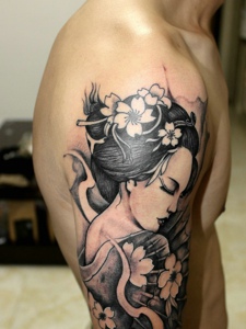 大臂一枚古代美女花妓纹身图案