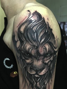 大臂精致清晰的狮子头纹身图案