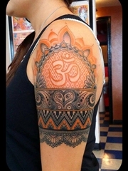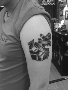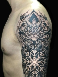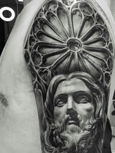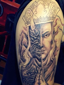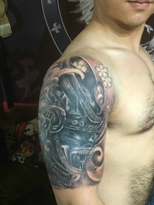 大臂色彩鲜艳的邪龙纹身图案很帅气