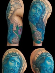 大臂耶稣牡丹纹身图案图案