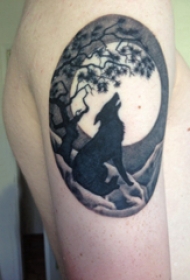 狼和花纹身图案 男生大臂上大树和狼纹身图片