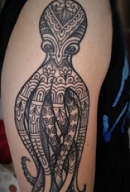 极简线条纹身 男生大臂上黑色的章鱼纹身图片