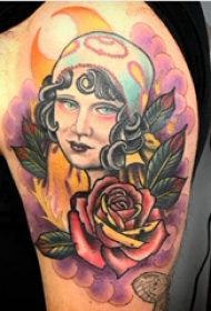 女孩和花朵纹身图案 男生大臂上女孩和花朵纹身图片