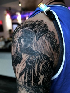 大臂欧美男士肖像纹身图案很帅气