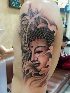 大臂黑灰邪龙纹身图片帅的不要不要的