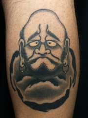 小腿黑灰达摩纹身图案