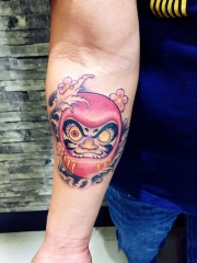 大臂日式达摩彩色纹身图案