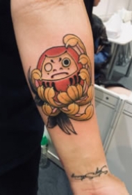 大臂有趣的卡通达摩和花朵纹身图案