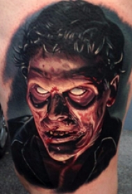 人物肖像纹身 男生大腿上写实的人物肖像纹身图片
