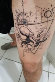 黑色章鱼纹身 男生大腿上黑色章鱼纹身图片