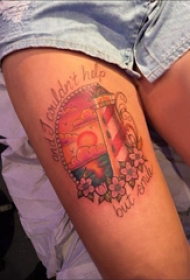 建筑物纹身 女生大腿上彩色的建筑物纹身图片