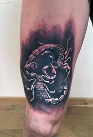 大腿惊人的逼真五彩黑蝎子与心脏纹身图案