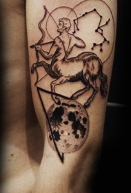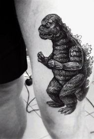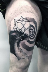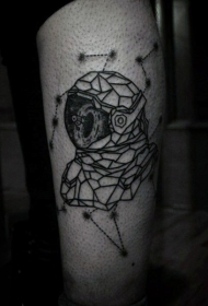 大腿印象深刻的黑灰章鱼与宇航员纹身图案