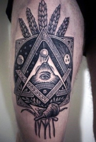 大腿黑色神秘的眼睛三角形大麦纹身图案