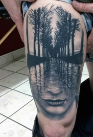 大腿令人惊叹的黑白美杜莎和蛇纹身图案