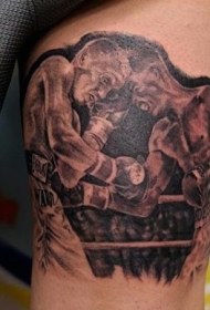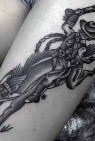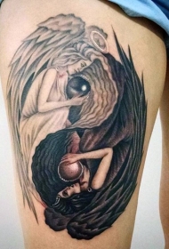 大腿独特的手绘黑白肖像与骷髅面具纹身图案