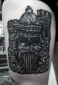 大腿有趣的黑白骷髅手与子弹组合纹身图案