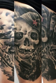 华丽的二战主题黑色军事战机骷髅纹身图案
