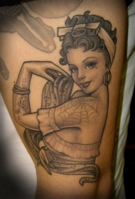 大腿时尚黑灰美丽舞者肖像纹身图案