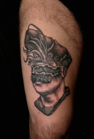 大腿黑色被切开的肖像纹身图案