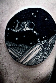 黑色圆形宇航员和太空风景纹身图案