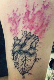 大腿上彩绘小清新植物花朵人物肖像纹身图片