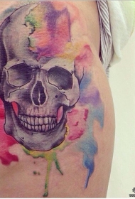 大腿性感彩色泼墨长颈鹿头像纹身图案
