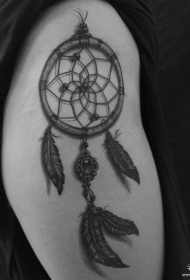 大腿上黑白灰风格点刺植物素材花朵人物肖像纹身图片