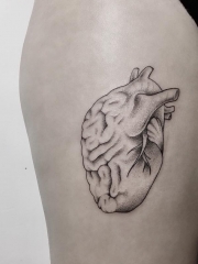 双大腿上的老虎和嘴里的骷髅头纹身图片