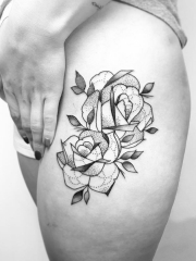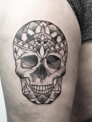 大腿欧美国王黑灰点刺tattoo纹身图案