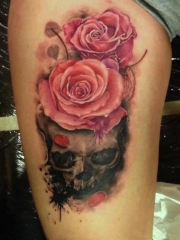 大腿new school骷髅蝴蝶鹿女郎彩色纹身图案