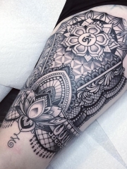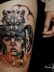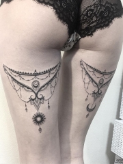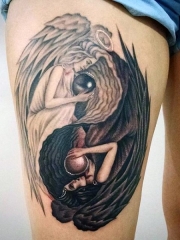 大腿卡通童话彩绘爱丽丝奇幻之旅纹身