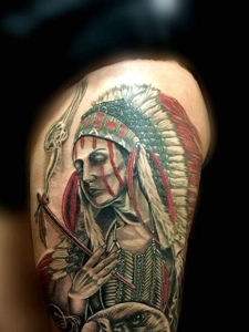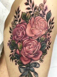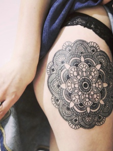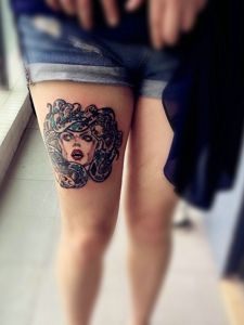 大腿外侧鲜艳无比的彼岸花纹身刺青