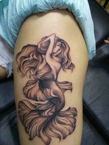 大腿惊艳美丽的红鲤鱼纹身刺青
