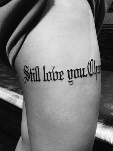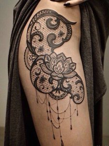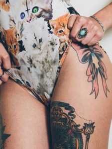 大腿上的黑白鲤鱼纹身图片格外耀眼