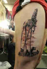 纹身大腿男 男生大腿上黑色的人物和大象纹身图片