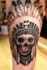 印第安酋长纹身 男生大腿上黑色的印第安纹身图片