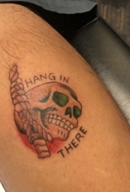纹身骷髅头 男生大腿上骷髅纹身图片